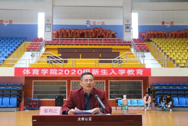 本站讯(学生记者 刘志权 朱伟)金秋九月,丹桂飘香。体育学院迎来了一批朝气蓬勃的新生。9月27日上午,体育学院2020级本科新学籍管理、学业指导教育知识讲座在体育馆篮球馆召开。参加讲座的有体育学院学工科老师谌琪、辅导员和全体新生。本次讲座由教务科科长邹利江主持。