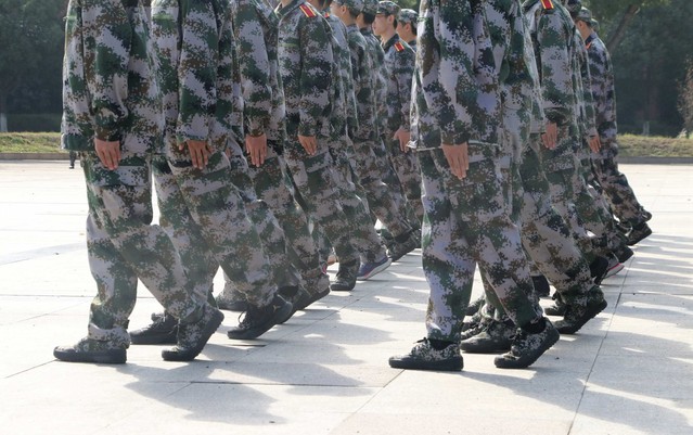 军训的第二天,站在骄阳下的同学们一遍又一遍地跟着教官的口号做着四面转法练习。教官的一声声口号在阳光下响着,同学们的汗水一滴一滴地从脸颊滑落,校园上空飘扬着他们以实际行动书写下的坚强的气息。那一声声嘹亮的振奋人心的声音,给平日里安静的校园增添了一份活力。