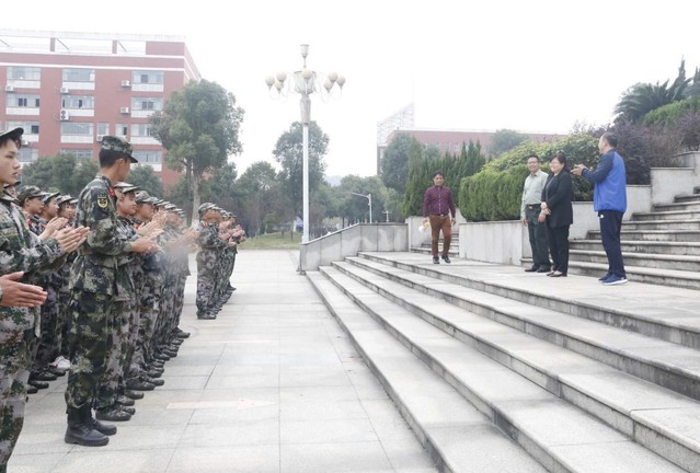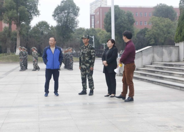 本站讯(学生记者 曹强 刘宏仪)金秋十月,丹桂飘香。为提升同学们对军训的热情,保障我院军训期间的各项工作顺利进行,10月29日,宜春学院副校长余新卫、保卫处处长邓卫红和体育学院院长龙建新深入军训场地视察军训工作开展情况,慰问教官,看望参训学生。