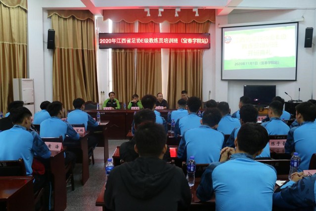 本站讯(学生记者 朱森林 赵丹)11月1日,江西省足球E级教练员培训班(宜春站)开班典礼在体育馆会议室顺利举行。本次培训诚邀江西足协E级班讲师金丽鹤授课;宜春学院体育学院院长龙建新、宜春市足球协会执行主席曾劭华、宜春学院体育学院王方雨老师以及36名来自体育学院足球专业的学生出席开班仪式。