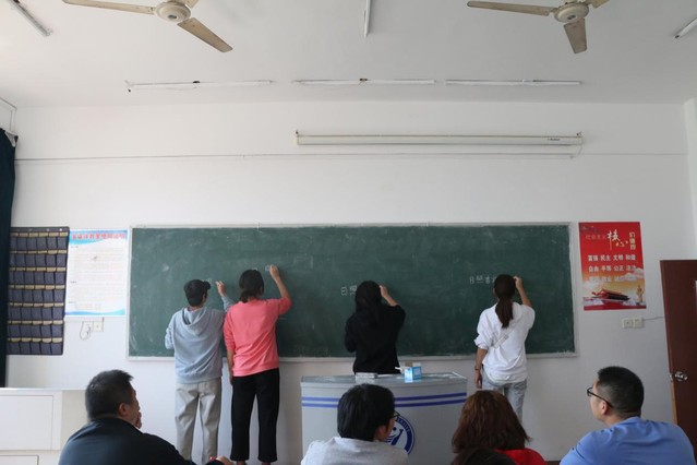 钢笔字环节选手书写杜牧的《回乡偶书》,粉笔字环节选手书写李白的《望庐山瀑布》,比赛极大的调动了选手的书写热情和参赛激情,大家在规定的时间内认真地完成了书写。评委们本着公平公正的原则进行了赛后评分。语言表达比赛中选手们各显身手,结合自身经历,富有激情地阐述着自己的“教师梦”。在多媒体课件制作、模拟课堂教学和教学设计比赛过程中,选手以自信的姿态,饱满热情地讲课,将他们的情感融入课堂,带动了授课现场的氛围。