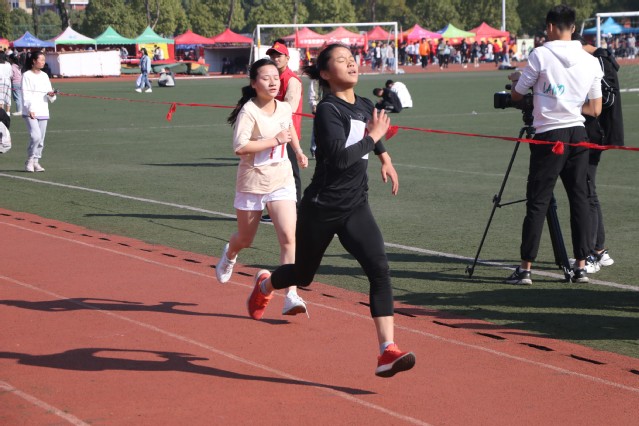 在最后一圈的时候。运动健儿们拿出最后的体力进行冲刺,比赛走向高潮,所有目光紧紧盯向一处。最终,王云秀同学一鼓作气,率先冲线,欢呼声此起彼伏。直到所有运动员们陆续冲过终点线,在声声祝贺中被搀扶着休息,沸腾的操场才渐渐安静下来,被一片轻松温馨的气氛包围。最后,王云秀同学以1207.89的成绩夺下冠军。
