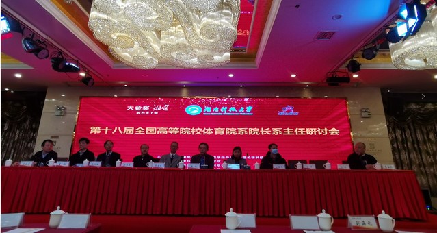 本站讯(体育学院 供稿)2021年1月8日-10日,由全国高等学校体育教学指导委员会理论学科组主办、湖南科技大学体育学院承办的第十八届全国高等院校体育院系院长系主任研讨会在湖南湘潭举行。国务院学位委员会第五、六、七届体育学科评议组成员、全国高校体育教学指导委员会理论学科组组长、华东师范大学体育与健康学院院长季浏教授,国务院学位委员会第五、六、七届体育学科评议组成员、全国高校体育教学指导委员会技术学科组组长、苏州大学原校长助理王家宏教授,国务院学位委员会第五、六、七届体育学科评议组成员、华南师范大学体育科学学院原院长周爱光教授,北京师范大学体育与运动学院院长殷恒婵教授,国务院学位委员会第八届体育学科评议组成员、华东师范大学体育与健康学院党委书记汪晓赞教授,湖南省教育厅二级巡视员左清、湖南科技大学校长朱川曲教授等出席了会议。会议由湖南科技大学副校长胡石其教授主持,共有来自全国200余位高校体育院系的院长、系主任参加了这次研讨会。体育学院院长龙建新教授、副院长范叶飞教授应邀参加了此次会议。
