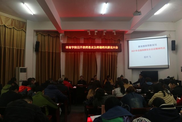 本站讯(学生记者 刘志权 李嘉欣 章燕萍)为深入学习贯彻习近平总书记关于教育的重要论述和教师队伍建设、师德师风建设重要指示要求,认真落实立德树人根本任务。4月7日下午,体育学院在体育馆会议室召开教师思政及师德师风建设大会。体育学院全体教师参加会议。
