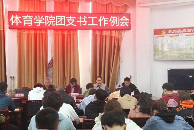 本站讯(学生记者 朱伟 邱建昆)为了明确体育学院各班级工作目标,调动工作积极性,2021年4月14日下午,体育学院在大会议室召开了学团工作例会,参加此次会议的有党委副书记于梅、学生事务办负责人黎轶等,以及体育学院全体团支书。