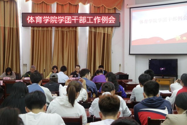 本站讯(学生记者 汪宇 邱建昆)4月21下午,体育学院在体育馆大会议室召开学团干部工作例会,参加此次会议的有党委副书记于梅、学生事务办负责人黎轶、学工科老师刘显东、蒋晓波、谌琪,及各班班主任、班干部,会议由学生事务办负责人黎轶主持。