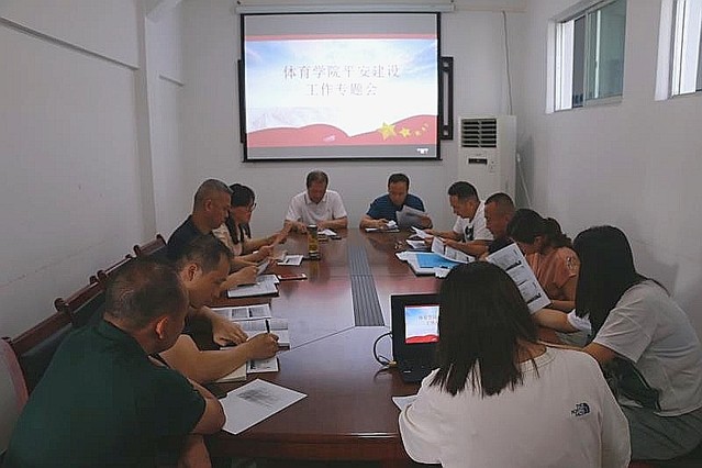 本站讯(学生记者 陈家乐) 6月23日,体育学院在体育馆小会议室召开平安建设专题会。院领导班子成员及各科室负责人参加此次会议,会议由院党委书记谢军同志主持。