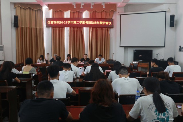 本站讯(学生记者 汪宇 傅宣腾) 为了进一步加强学风、考风建设、营造公平、公正、诚实守信的考试环境。6月23日下午,体育学院在体育馆大会议室召开2020-2021学年第二学期考前动员与警示大会。参加此次会议的有院党委副书记于梅、学生事务办负责人黎轶、学工科老师刘显东、蒋晓波、谌琪及全体班主任、各班班长、团支书。学生事务办负责人黎轶主持本次会议。