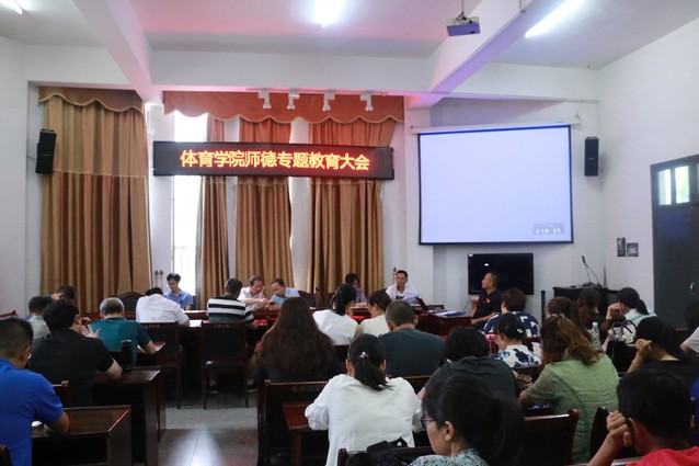 本站讯(学生记者 朱伟 肖龙腾)为加强师德师风建设教育,认真落实立德树人根本任务。6月30日下午,体育学院在体育馆会议室召开师德专题教育大会。体育学院全体教师参加本次会议,会议由体育学院院长龙建新主持。
