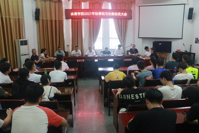 本站讯(学生记者 陈家乐)为贯彻落实省教育厅文件《关于做好2021年秋季选派音体美专业师范生赴农村小学实习支教工作的通知》,确保体育学院2021年秋季实习支教工作顺利召开,7月2日下午,体育学院在体育馆大会议室开展体育学院2021年秋季实习支教动员大会。体育学院党委书记谢军、院长龙建新、副院长范叶飞、教学与科研办负责人邹利江、实践教学负责人毛海峰及校内实习指导老师出席此次会议,参加此次会议还有选派实习支教的69名18级学生,副院长范叶飞主持此次会议。