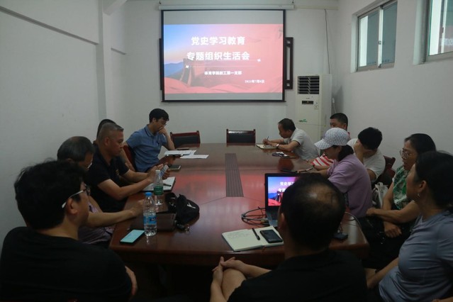 本站讯(学生记者 陈家乐 刘志权)根据省委党史学习教育领导小组办公室《关于召开党史学习教育专题组织生活会的通知》精神,学校和学院党史学习教育工作安排,7月8日,体育学院教工第一党支部在体育馆会议室召开党史学习教育专题组织生活会,本次会议由教工第一党支部书记范叶飞主持,教工第一党支部全体党员教师参加。
