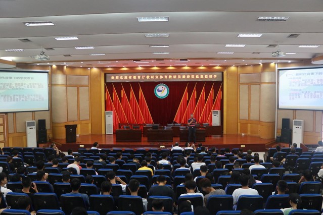 本站讯(学生记者 陈家乐)为进一步增强体育学院师生对学校体育教育的现状与发展趋势的了解,7月2日下午,省教育厅体育教研员杨涛应邀来体育学院讲学。讲座在校学术报告厅举行,院长龙建新主持讲座,18级、19级、20级体育教育专业全体师生共三百余人参加讲座。