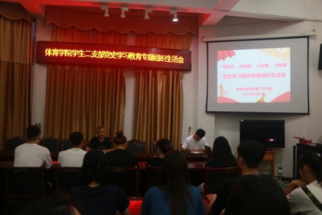(党建助理办公室 投稿)为进一步走深走实党史学习教育,赓续党的精神血脉,提高党员党性修养,牢记初心使命,坚定理想信念,把党史学习教育成果落在实处,为提高党员的批评与自我批评能力,体育学院学生第二党支部于2021年7月7日晚上在体育馆会议室开展党史学习教育专题组织生活会,会议由学生二支部刘显东老师主持,全体学生党员参会。