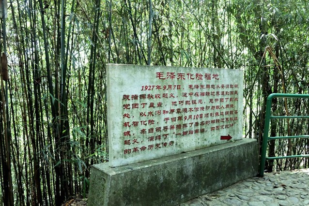 1927年“八七会议”后,当年34岁的毛泽东肩负党的重托,以中央特派员的身份回到湖南长沙主持召开湖南省委会议,组织秋收起义。在从安源出发到铜鼓的途中,他被国民党团防局团丁扣留,凭着机智和勇敢摆脱团丁,在铜鼓月形湾遇上铜鼓纸工会的会员陈九兴,在陈九兴的帮助下,毛泽东同志安然脱险、顺利抵达铜鼓。并在此留下了一段“一脚踏两省,四圆定乾坤”的传奇故事,铜鼓县也成为一代伟人“逢凶化吉,遇难呈祥”的福地。