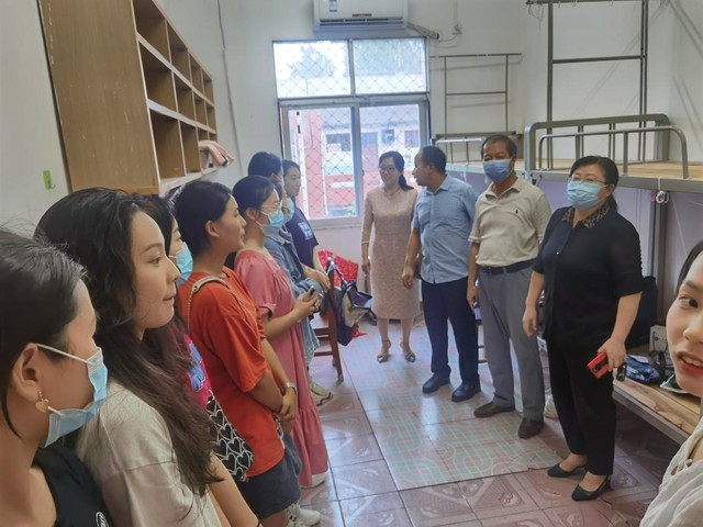 在走访过程中,校、院领导亲切地与2021级新生进行交谈,询问他们报到过程是否顺利,以及他们的家庭情况和到校后的适应情况。余新卫副校长细心地为同学们介绍入学后的相关注意事项,对同学们提出的问题也进行详细的解答,并鼓励他们积极适应学校生活,尽快融入到新的学习生活环境中,做好迎接大学新生活的充分准备。余新卫副校长一行还了解了寝室的卫生情况和安全状况,督促学生保持寝室卫生、注意用电安全,共同努力营造良好的生活环境。