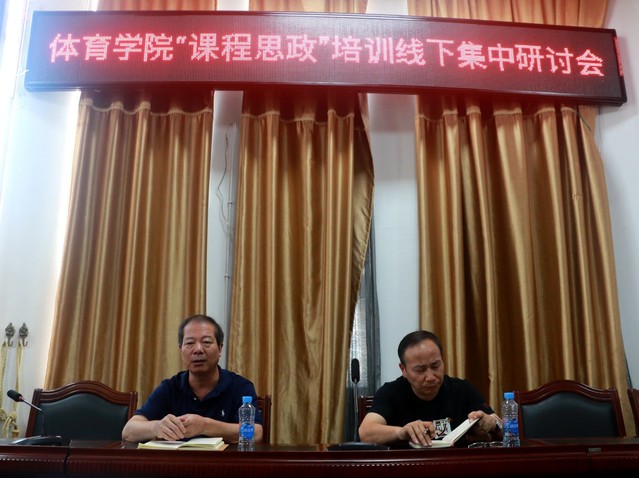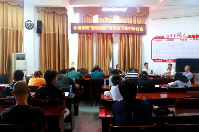 本站讯(学生记者 肖京杨)为深入贯彻落实全国高校思想政治工作会议和新时代全国高等学校本科教育工作会议精神,进一步推进学校“课程思政”建设工作,。9月2号下午,体育学院在体育馆会议室召开“课程思政”培训研讨会,体育学院党政领导、各科室负责人、教师代表出席,会议由范叶飞副院长主持。