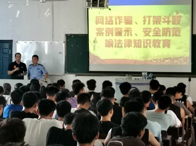 首先邓海清介绍了网络电话诈骗、盗窃及校园网络贷款案件等方面的通用手段,并进行安全教育传授学生预防、应对违法犯罪的经验与技巧,与学生进行互动,号召同学们提高防范意识、争做“遵纪守法、品行兼优”的合格大学生。随后,邓海清警官针对校园特点,讲解了在学生宿舍、教室、运动场、食堂等场所的安全防范注意事项,他希望学生能全面增强法律法规观念,自觉遵纪守法,严格遵守学院各项规章制度,共同创造安全文明的和谐校园。