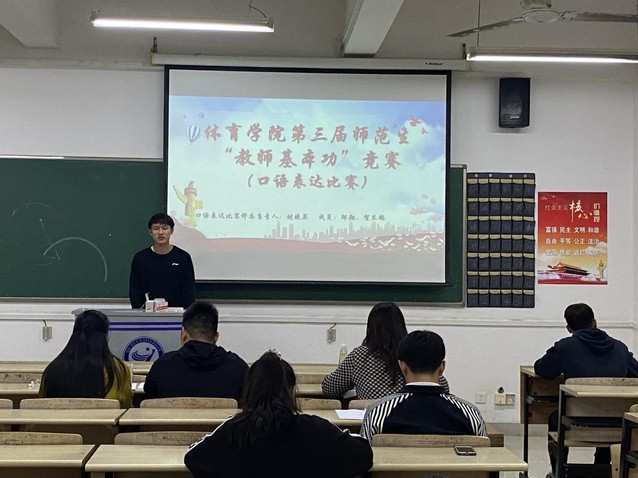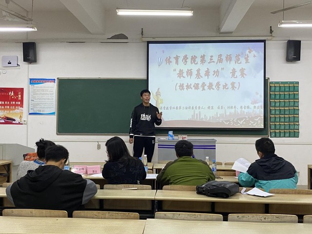 本站讯(学生记者 章燕萍 李嘉欣)为强化师范生职业技能,提升师范生实践能力,促进大学生专业成长,达到以赛促学、以赛促练的目的,体育学院在二教楼西一501、502等5个教室举行了师范生“教学基本功”竞赛。10月14日至21日期间,共70名选手参加第一轮预赛,靠前的36名选手脱颖而出进入第二轮比赛。由体育学院部分老师担任此次比赛的评委。参赛人员为体育学院大一、大二、大三体育教育专业学生及自愿参加的非师范专业学生。