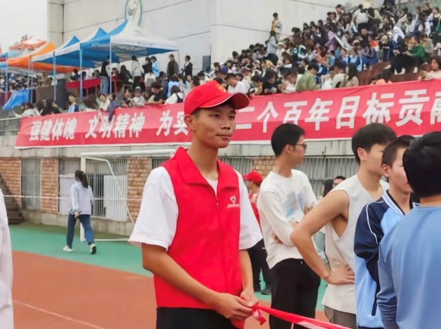 经过近六十天的相处,我希望你们在赛场上英姿显自豪,脚下步伐在飞奔。你们是骄傲。你们是自豪,跑道因你幻彩,面对红色跑道,希望你们发挥出最好的状态,不惧一切冲向终点。加油!运动员们。——体育学院学生会章宇