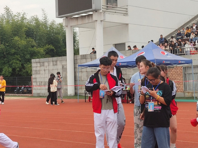 我们身为学生记者,和运动员一样在乎成绩,和运动员一样紧张比赛过程,甚至比运动员更卖力地提前准备。在赛前,我们精心准备采访提纲,为的就是能够将破纪录的运动员激动的心情呈现出来。赛中,我们奋力追逐运动员身影。赛后,我们及时关注比赛成绩,默默穿梭于田径场的各个角落。——体育学院记者站陈家乐