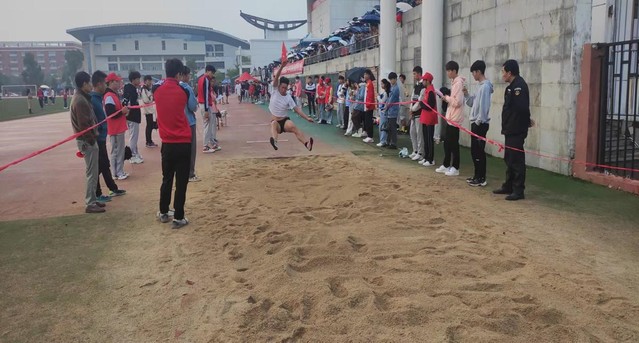 经过激烈的比拼后,21运训2班胡弘洋以6.50米的成绩获得男子专业组跳远第一名。