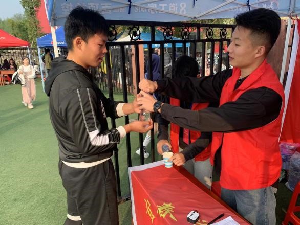 早上8:00,学生党员以及党建助理办公室成员来到了值班点。有的缓解运动员紧张的心情;有的为运动员管理财物;有的不断地给予运动员加油鼓励。比赛结束后,学生党员为运动员递上了纸巾与水,细心询问运动员的身体状况。