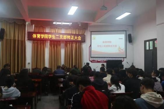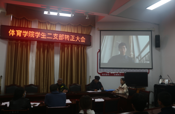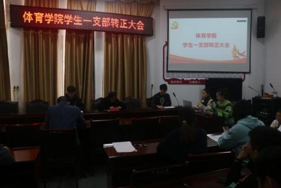 本站讯(党建办公室 供稿)体育学院在11月4日和11月5日在会议室召开学生一支部和二支部预备党员转正大会,大会由学生党支部书记主持,学生党支部全体学生党员、预备党员参会。