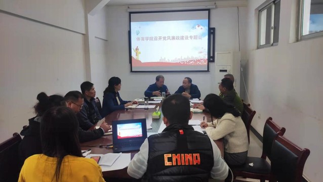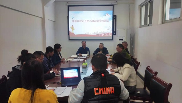 本站讯(学生记者 潘美婷 周书怡 周成庚)11月3日上午,体育学院全体领导班子在体育馆小会议室召开党风廉政建设专题会。体育学院领导班子、支部书记、教师代表参加此次会议。