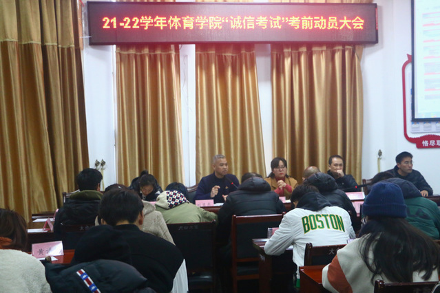 本站讯(学生记者 李嘉欣 邹美豪)期末考试将至,为了培养同学们树立诚信考试的理念,以积极向上的状态迎接即将到来的期末考试,12月22日体育学院召开了以“诚信考试”为主题的教育会议。会议由体育学院党委副书记于梅主持,体育学院全体班主任、班长、学生代表参与本次会议。