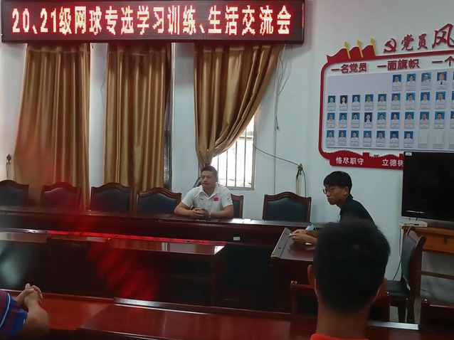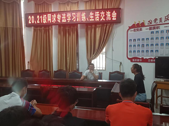 与会同学各抒己见,积极发言,开展了激烈讨论。首先几位代表学生提出学习建议——在思想上要端正态度,积极上进,鼓励各自在学习训练上勤奋刻苦,能够按时自律晚训,在网球队的相处生活中学习到同学间亦师亦友的关怀,从同学身上学习到各方面长处补足自己。