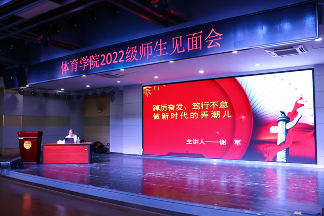 本站讯(学生记者 谢毅)为帮助2022级新生们尽快适应大学学习生活,树立新的奋斗目标,踔厉奋发、笃行不怠,做有理想、有本领、有担当的新时代青年,9月6日下午,体育学院在大学生活动中心三楼共青团发展中心开展2022级新生入学教育活动,讲座由体育学院党委书记谢军主讲。