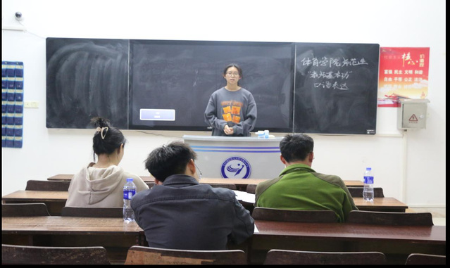 本站讯(学生记者 余萍 聂鹏坤 孙茗阳)为进一步增强师范生实践应用能力和创新能力,彰显师范特色,提升师范生教育教学水平,在“以赛促教”“以赛促学”中提升学院体育教育专业人才的培养。体育学院在主教楼东S104、S105等5个教室举行了师范生“教师基本功”竞赛。10月17日至19日期间,共82名选手参加比赛,参赛人员由体育教育专业的大一、大二、大三学生及自愿参加的非师范专业的学生,评委由体育学院部分老师担任。
