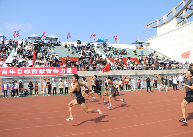 随着一声枪响,力量在那一刹那间展现,只知道,胜利并不遥远。百米运动健儿们,一气呵成,冲向终点。青春的跑道回应着他们的步伐,终点线已依稀可见,无数个日夜的辛劳,将在此刻兑现。最后,19体教一班陈腾翰同学以10秒24的优异成绩打破男子一百米校纪录,获得冠军。