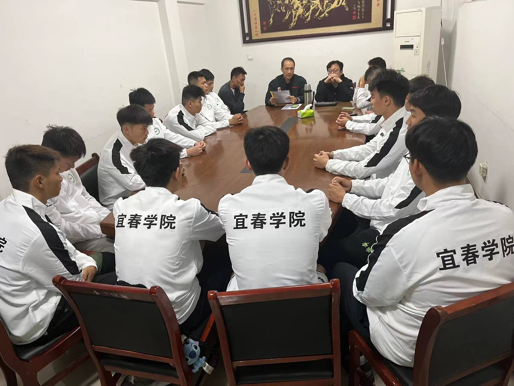 本站讯(学生记者 温焕 顾天乐)10月28日下午,体育教育专业篮球队在小会议室组织召开了江西省第十六届运动会篮球比赛赛前动员会议。球类教研室主任、球队领队谢林海,教练员黎轶、张太睿及全体运动员参加此次会议。