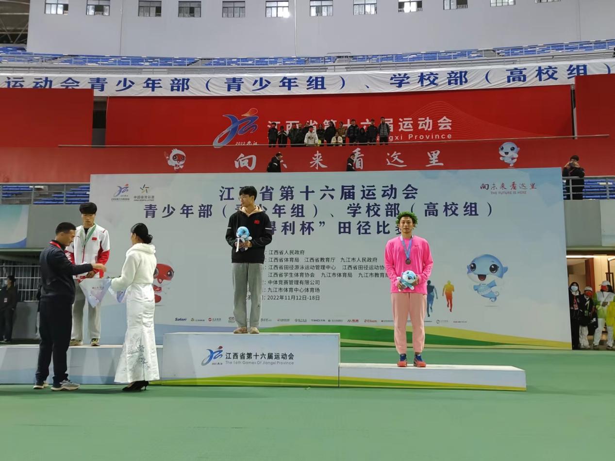 陈腾翰同学历经2021年省大学生运动会的挫败后,激情不减,重新出发。本届省运会100米也跑出了10.82秒好成绩,达到了国家一级运动员水平。同时,他作为主力队员也让我们学校在4 x 100接力项目中获得了铜牌,创下了宜春学院参赛以来的最佳战绩!