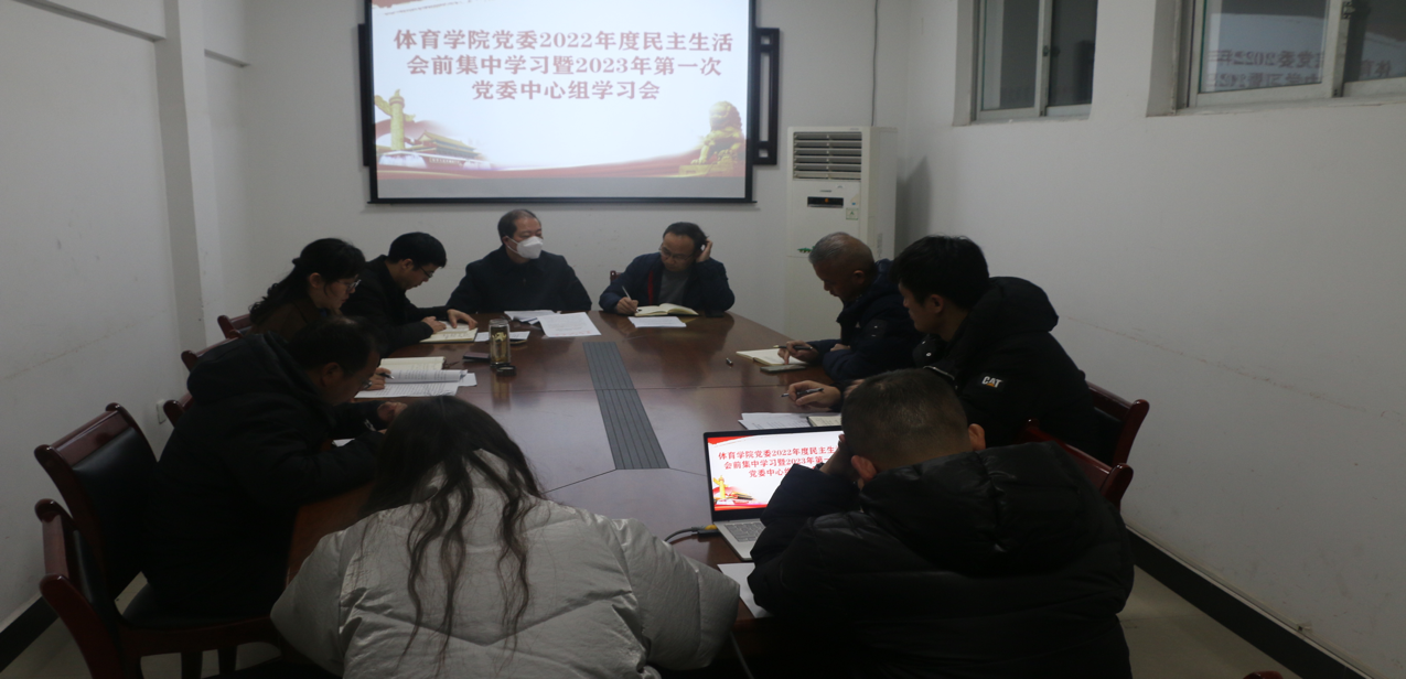 本站讯(学生记者 温焕)2023年2月8日上午,我院在体育馆小会议室举行2022年度民主生活会前集中学习暨2023年第一次党委中心组学习会。全体党委成员、支部书记参加,会议由体育学院党委书记谢军主持。