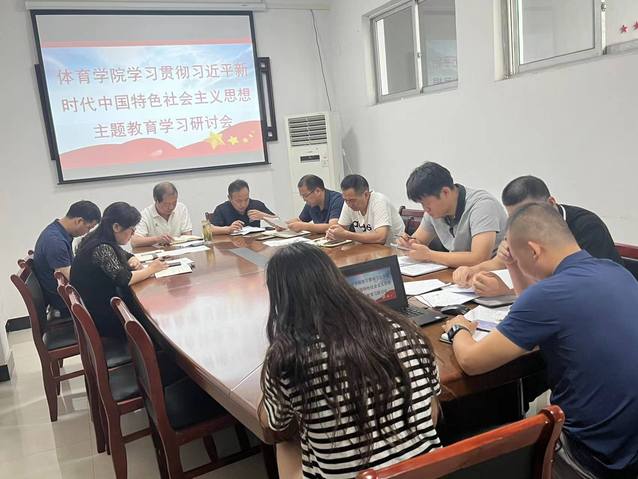 本站讯(学生记者 温焕)6月7日上午,体育学院全体党委班子成员在体育馆小会议室开展学习贯彻习近平新时代中国特色社会主义思想主题教育学习研讨会。会议由党委书记谢军主持。