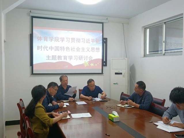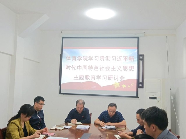 本站讯(学生记者 邹晶)5月24日中午,体育学院党委中心组成员在体育馆小会议室开展学习贯彻习近平新时代中国特色社会主义思想主题教育学习研讨会。会议由院党委书记谢军主持。