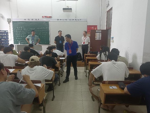 本站讯(学生记者 李东)为肃考风考纪,6月26日体育学院党委书记谢军、体育学院院长龙建新、教学与科研工作办公室主任邹利江等领导对体育学院2022-2023学年第二学期期末考试进行巡查,了解考场整体情况。