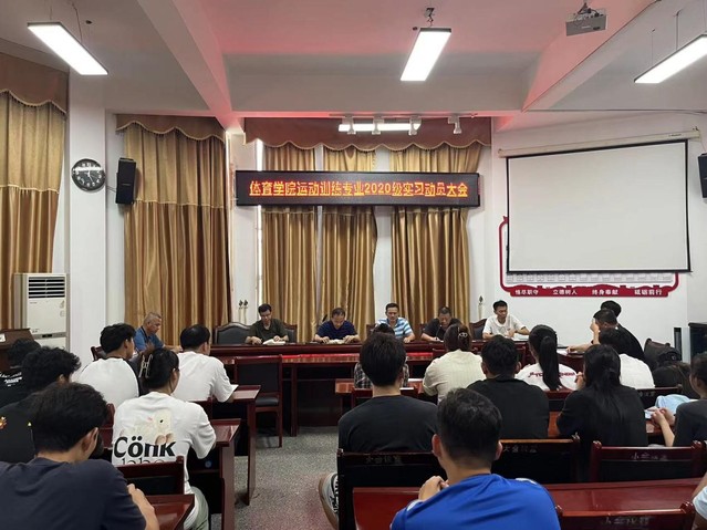 本站讯(学生记者 罗圣鹏)为了进一步做好运动训练专业的实习工作,保证实习过程的顺利进行,6月26号下午,体育学院召开2020级运动训练专业学生实习动员大会。体育学院院长龙建新,体育学院副院长范叶飞,体育学院教学科研办公室主任邹利江,体育学院运动训练专业负责人李学武,校内实习指导老师:张太睿、刘显东、黄永天、黄谱铨及全体2020级运动训练专业的学生参加了本次会议。