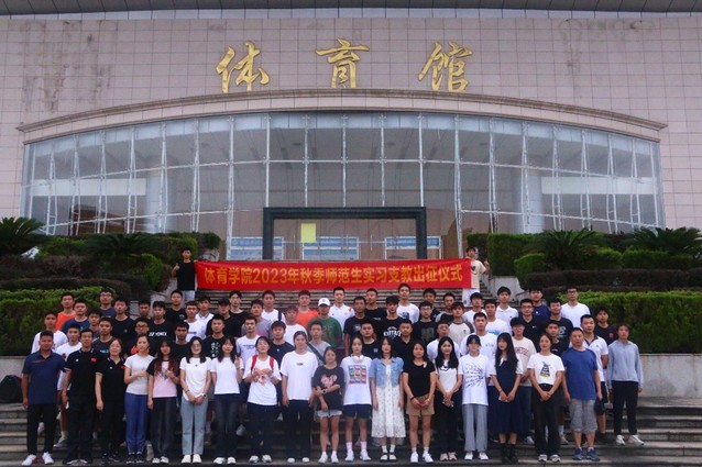 本站讯(学生记者 温焕)9月6日上午,体育学院2023年秋季师范生实习支教出征仪式在体育馆前举行,体育学院副院长范叶飞教授、体育学院实践教学负责人周雯艳、班主任谌琪、汪鹏、郭文吉老师及全体体育支教师范生参加本次活动,出征仪式由副院长范叶飞主持.
