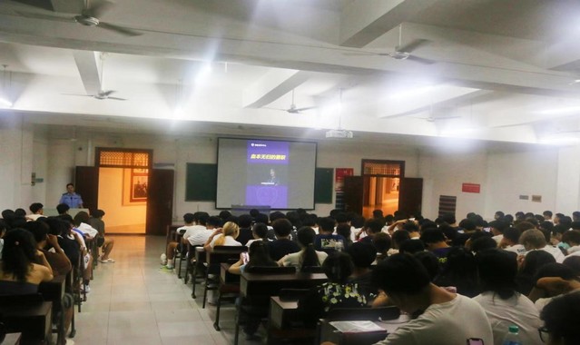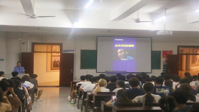 本站讯(学生记者·聂鹏坤)为进一步增强学生法治观念,增强法律意识和反电信网络诈骗意识,培养自觉遵纪守法、知法守法的新时代优秀青年,9月5日晚上,体育学院邀请学院派出所教导员陈娟警官在人文大202开展学生安全防范、反电信诈骗与法律知识讲座。