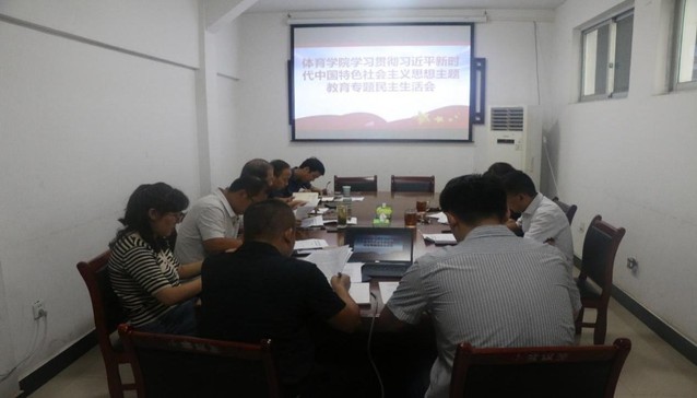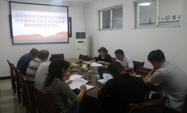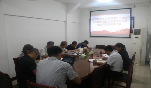 本站讯(学生记者 余萍 夏美琅)按照上级党委统一部署要求,9月4日上午,体育学院在体育馆小会议室召开学习贯彻习近平新时代中国特色社会主义思想主题教育专题民主生活会。这次民主生活会以“开展学习贯彻习近平新时代中国特色社会主义思想主题教育,坚持不懈用习近平新时代中国特色社会主义思想凝心铸魂,切实加强党的思想建设,是统一全党思想意志行动、始终保持党的强大凝聚力战斗力的必然要求,是推动全党积极担当作为、不断开创事业发展新局面的必然要求,是深入推进全面从严治党、以党的自我革命引领社会革命的必然要求”为主题。紧密联系体育学院工作实际,深入进行党性分析,深刻进行对照检查,严肃认真开展自我批评,坚决推动问题整改。校党委委员副校长余新卫、校纪委副书记涂以辉到会指导,院领导班子全体成员参加会议。会议由院党委书记谢军主持。