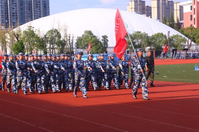 体育学院作为第二支方阵整齐有序地进入表演场地,展示13天来的训练成果,他们步伐整齐、口号嘹亮,走出了精神,喊出了军威,充分展现了宜春学院学生良好的精神风貌。经过军训洗礼的他们,脸上的稚嫩已然褪去,眼神多了几分坚毅。