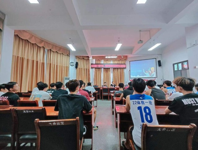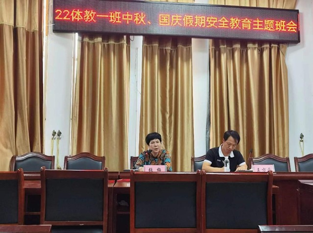 本站讯(学生记者 罗圣鹏)9月27日下午,体育学院22级体教一班召开中秋、国庆假期安全教育主题班会,校党委委员、纪委书记张梅作为第二班主任参加会议,并对国庆假期安全作出具体的要求,班主任王方雨主持会议。