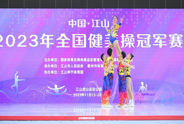 本站讯(学生记者 聂鹏坤 罗圣鹏 林明雄 )2023年11月13-20日,由国家体育总局体操运动管理中心、中国健美操协会主办,江山市人民政府、衢州市体育中心、江山市体育局承办,江山李宁体育园协办的全国健美操冠军赛在浙江省江山市举行。全国健美操冠军赛是国内健美操运动最高级别的赛事之一。本次比赛共吸引了来自全国各地的109个单位近千人参赛,设成年组、青年组、少年组、预备组和少儿组5个组别;项目分为竞技项目和有氧项目两大类,其中竞技项目包括男女单人操、混合双人操、三人操、五人操5个小项,有氧项目包括有氧舞蹈和有氧踏板2个小项。