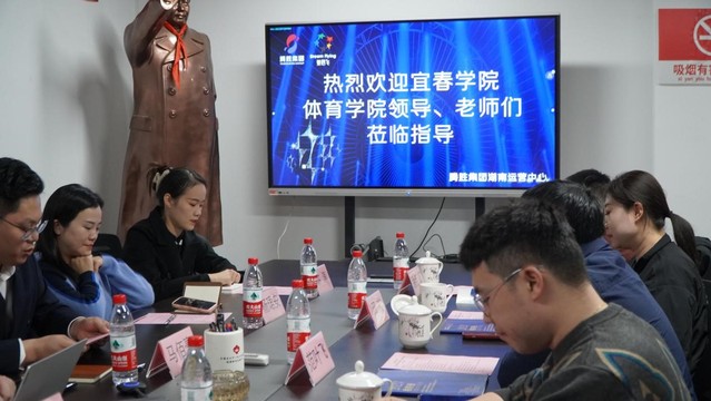 本站讯 (学生记者 曲甜甜)为深入落实党中央、国务院关于高校毕业生就业工作的决策部署,坚持把就业工作摆在突出位置,11月28号,体育学院副院长范叶飞、舞蹈表演负责人邱璇、舞蹈教研室主任王景振、舞蹈表演专业健美操队主教练潘芑骥一行深入实习基地开展“访企拓岗就业”行动。腾胜集团湖南运营中心艺考培训学校校长马佰豪、运营事业部经理张加林、人事部经理杨珺安等接待了副院长范叶飞一行并进行了洽谈,他们分别介绍了公司与学校的基本情况、详细了解了企业现状、未来发展趋势以及2020级实习生的培养方案。