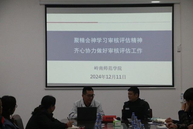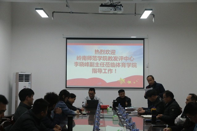 本站讯(学生记者 甘雪芹)1211日下午,岭南师范学院教学发展与质量测评中心副主任李晓峰、体育科学学院副院长梁立启莅临体育学院进行关于本科教育教学审核评估的指导及咨询工作。指导工作在文化艺术中心W107会议室进行,体育学院院领导、科室长、专业负责人、教研室主任、全体博士参加本次活动。活动由体育学院院长龙建新主持。