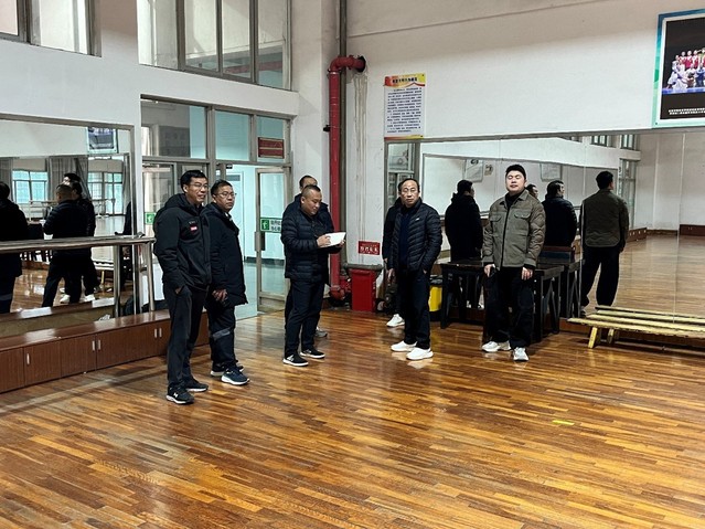 本站讯(学生记者 黄天玮)新学期伊始,为进一步加强体育场馆安全管理,保障师生人身安全和维护校园秩序稳定。216日上午,体育学院开展新学期体育场馆设施安全检查工作,针对体育场馆设施维护、巡查管理、消防安全等进行安全隐患排查。院长龙建新、副院长范叶飞、副院长屈红林,以及院科室负责人和教研室主任一同参加检查工作。