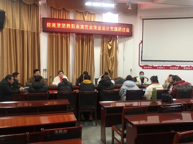 本站讯(学生记者 吴亚昆 邹丽玄)为进一步深化舞蹈表演专业教学改革,展示毕业生的实践创新能力,219日下午我院舞蹈表演专业教师团队在体育馆大会议室开展了毕业设计优化的专题研讨。参加研讨会的有体育学院副院长范叶飞教授及舞蹈表演专业全体教师,研讨会由舞蹈表演专业负责人邱璇副教授主持。